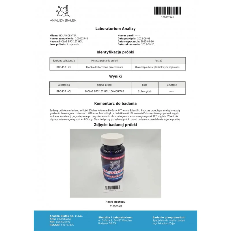 BPC-157 HCl 100 mcg 60 caps is a high-quality research-grade peptide designed for advanced laboratory studies focused on tissue regeneration, cellular repair, and connective tissue signaling. Each capsule contains a precise 100 mcg dosage, offering consistent material for controlled experiments, educational research, and laboratory investigations into structural repair pathways.