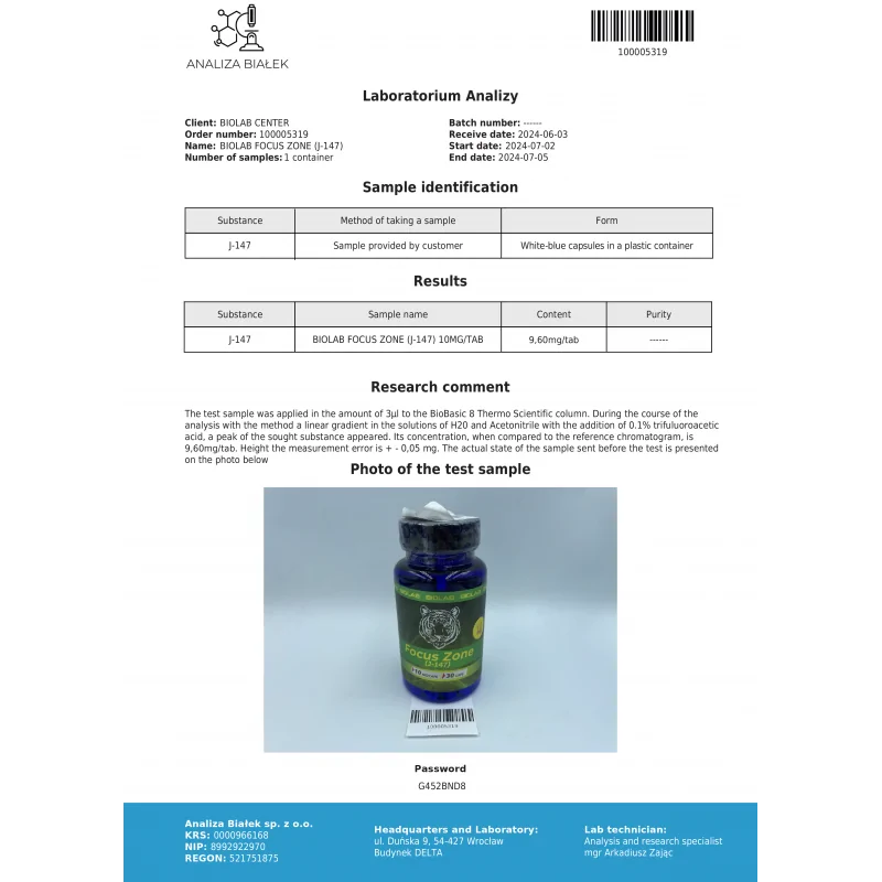 Focus Zone (J-147) 10mg 60 caps is a research-grade nootropic compound formulated to support memory, focus, mental clarity, and neuroprotection. Widely used in laboratory research, J-147 has been studied for its potential to enhance cognitive function, protect neural pathways, and support healthy brain aging.